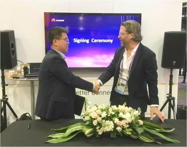 華為安全網(wǎng)關(guān)領(lǐng)域總經(jīng)理劉立柱(左)和Avira首席執(zhí)行官 Travis Witteveen(右)現(xiàn)場簽署合作備忘錄